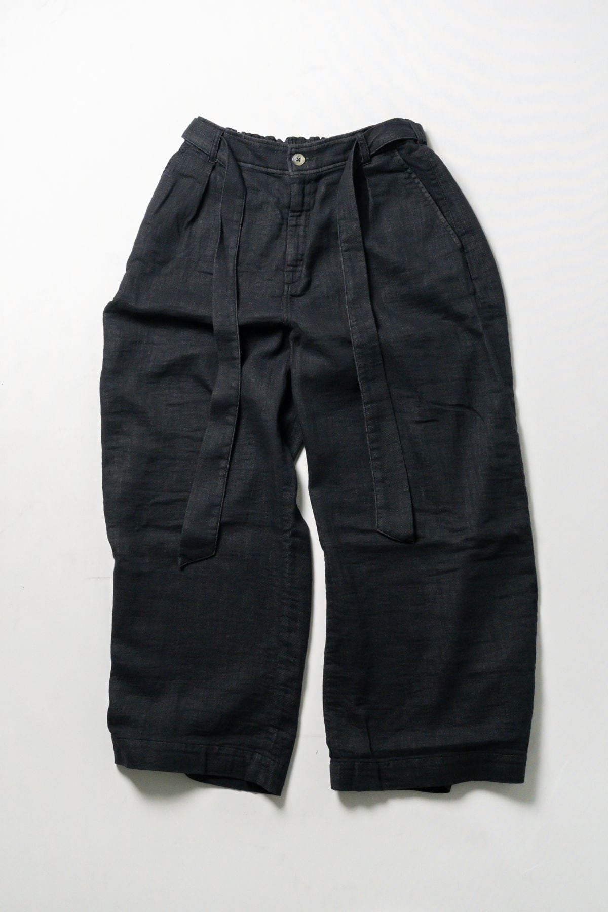 【オンライン限定|残りわずか】風をまとうパンツ。エアリーデニム ワイドパンツ / ブラック【ダブルガーゼ】【アリゾナレザー】