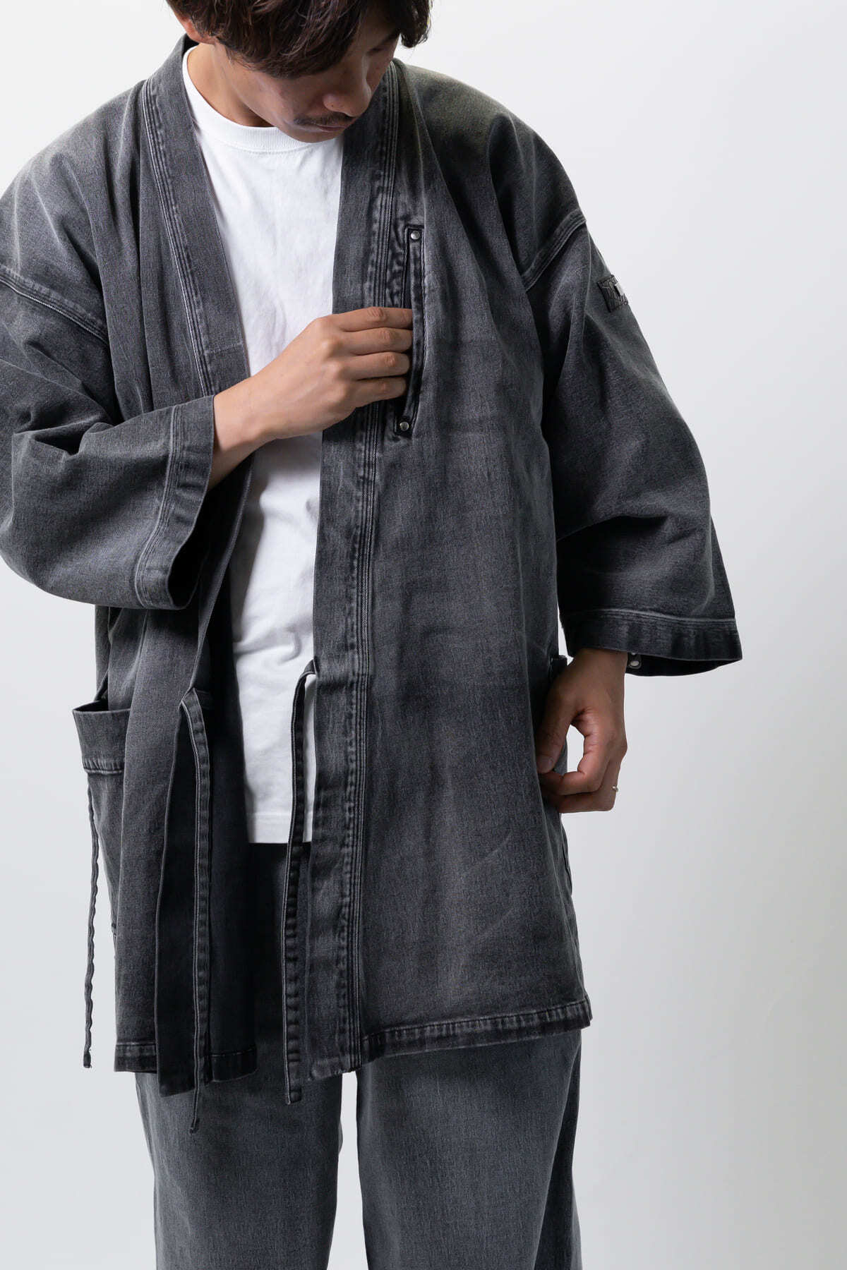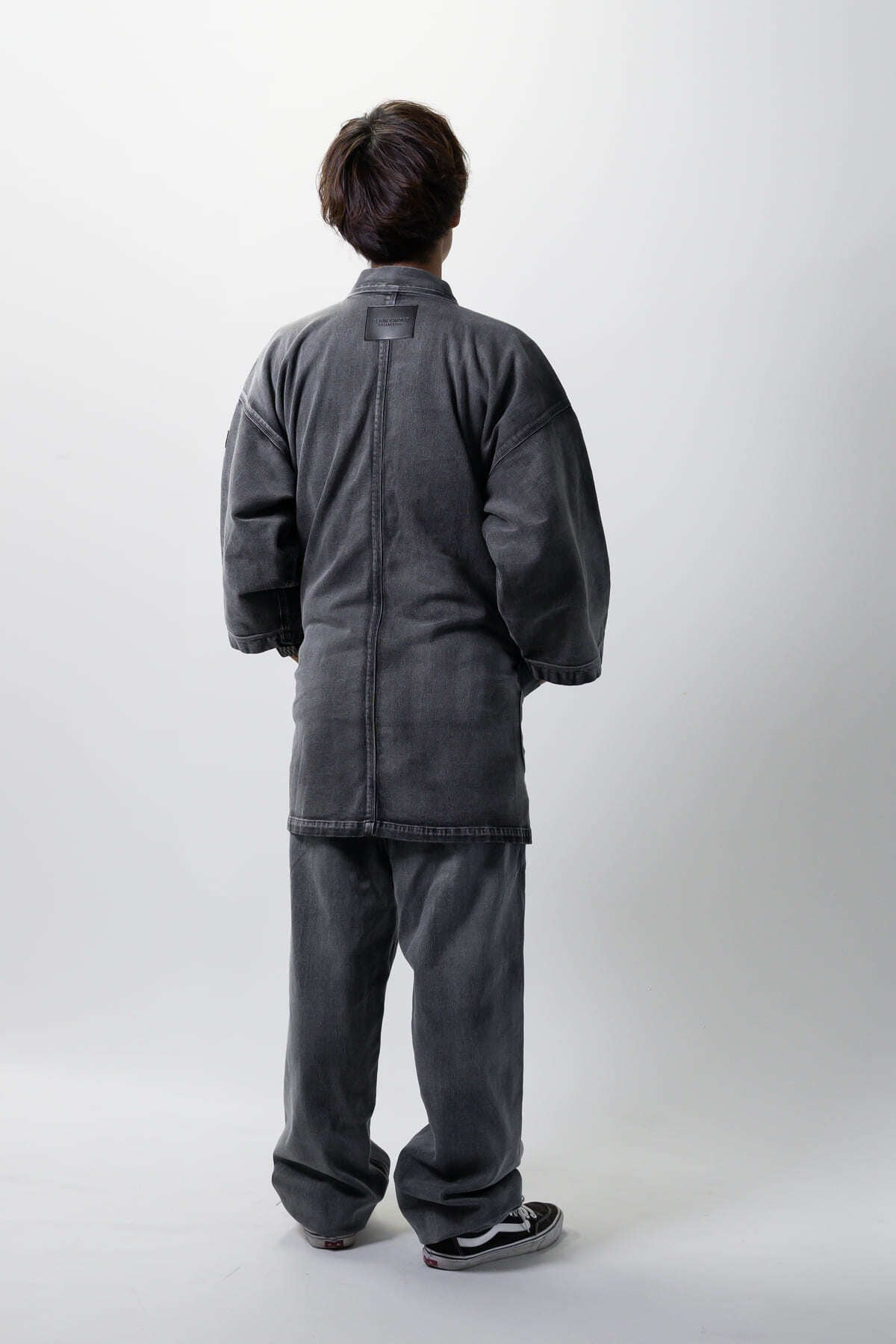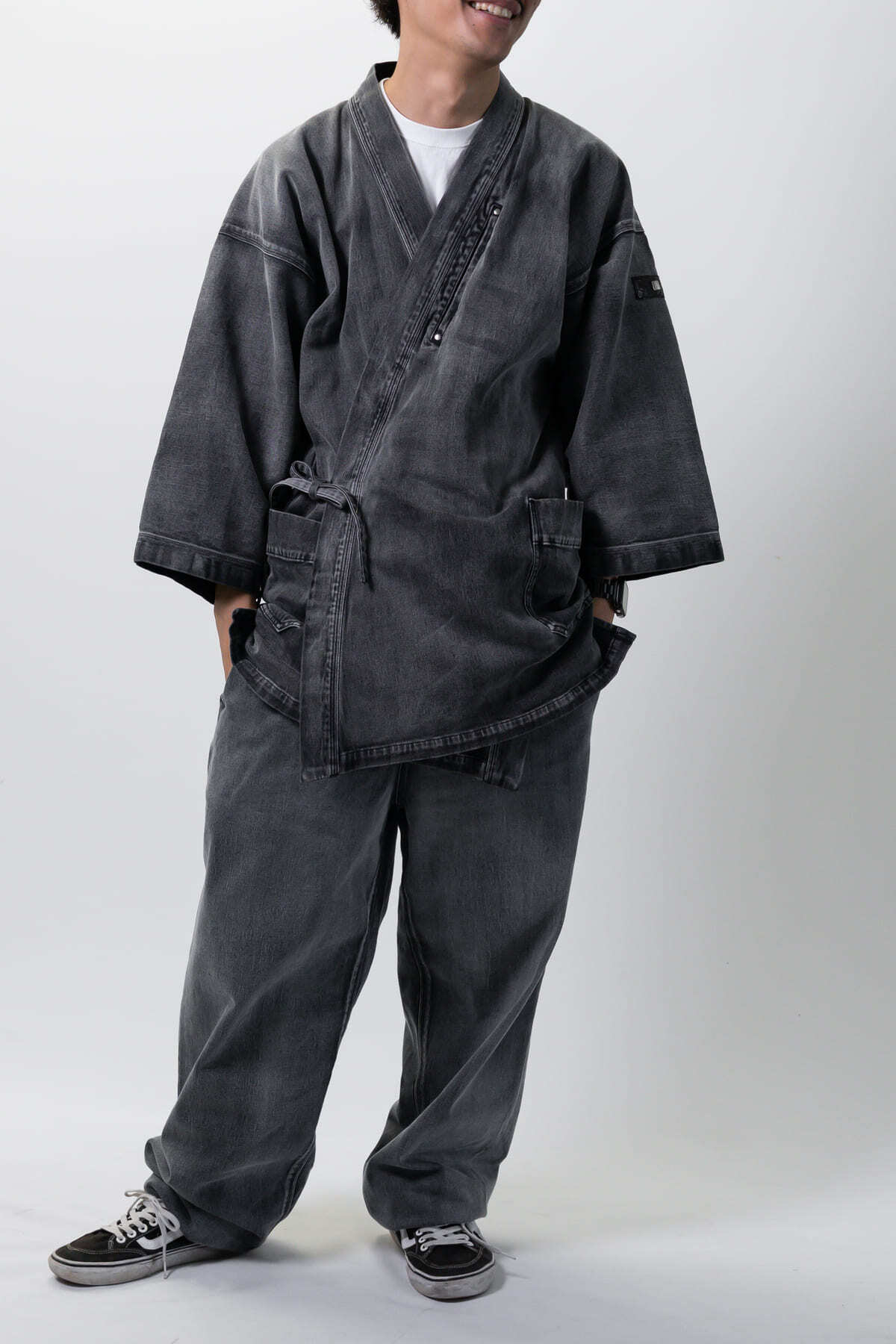 数量限定で復刻、クロコダイル×デニム作務衣-深灰-