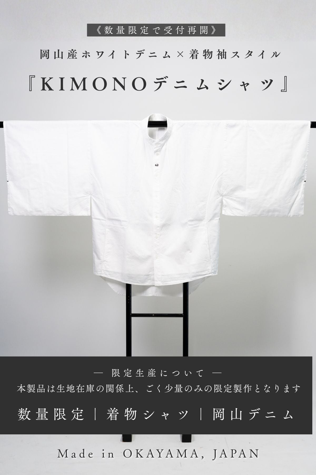 【数量限定|再販】Kimono Denim Shirt|和モダンを纏うデニムシャツ【岡山デニム】—AK-KIMNO-SH1 #WH