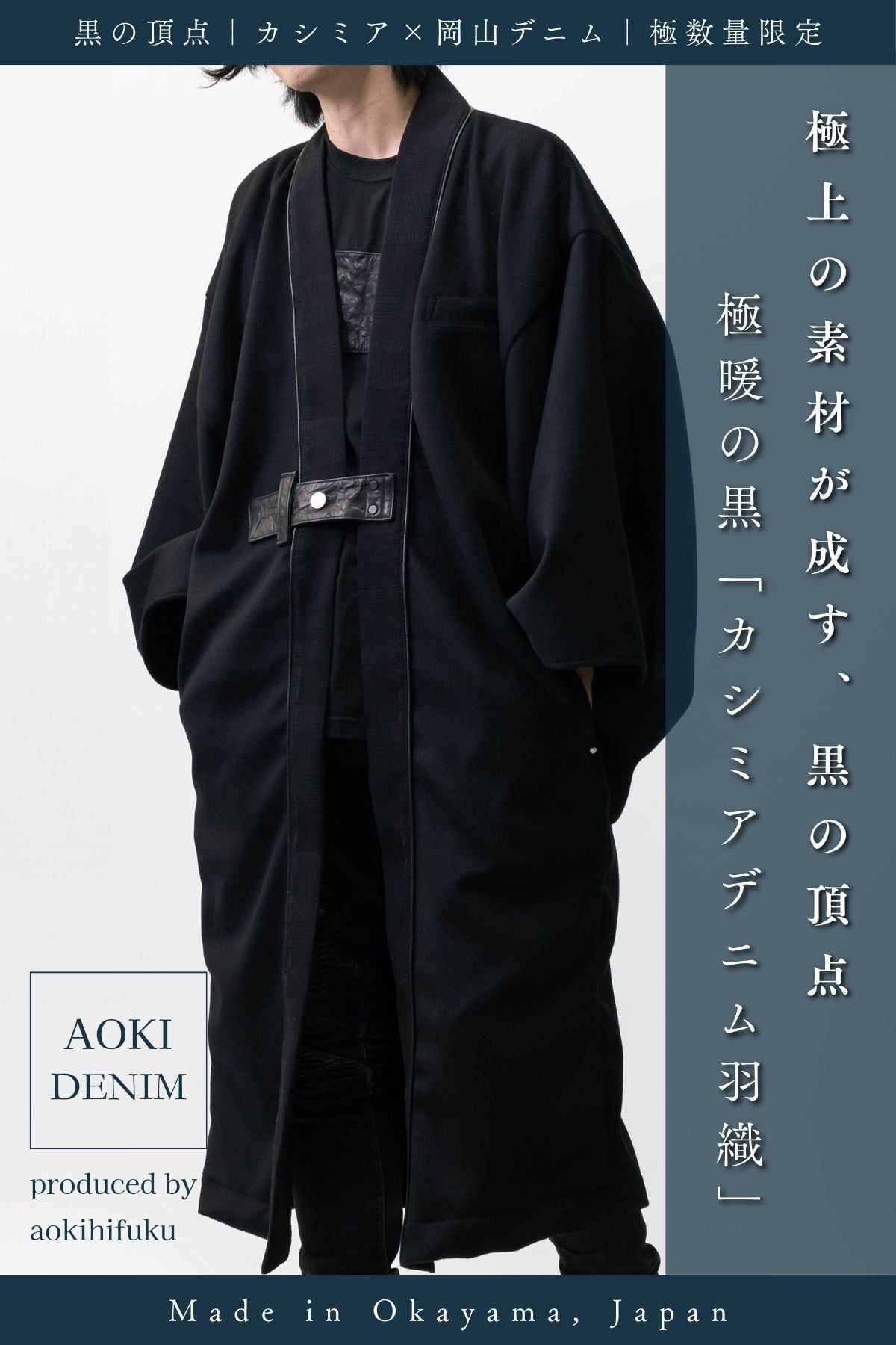 【受注生産|極少数限定】カシミヤ×デニム羽織/CASHMERE DENIM HAORI― 静寂を纏う、黒の品格【岡山デニム】【冬季限定】DK-HAORI-LONG