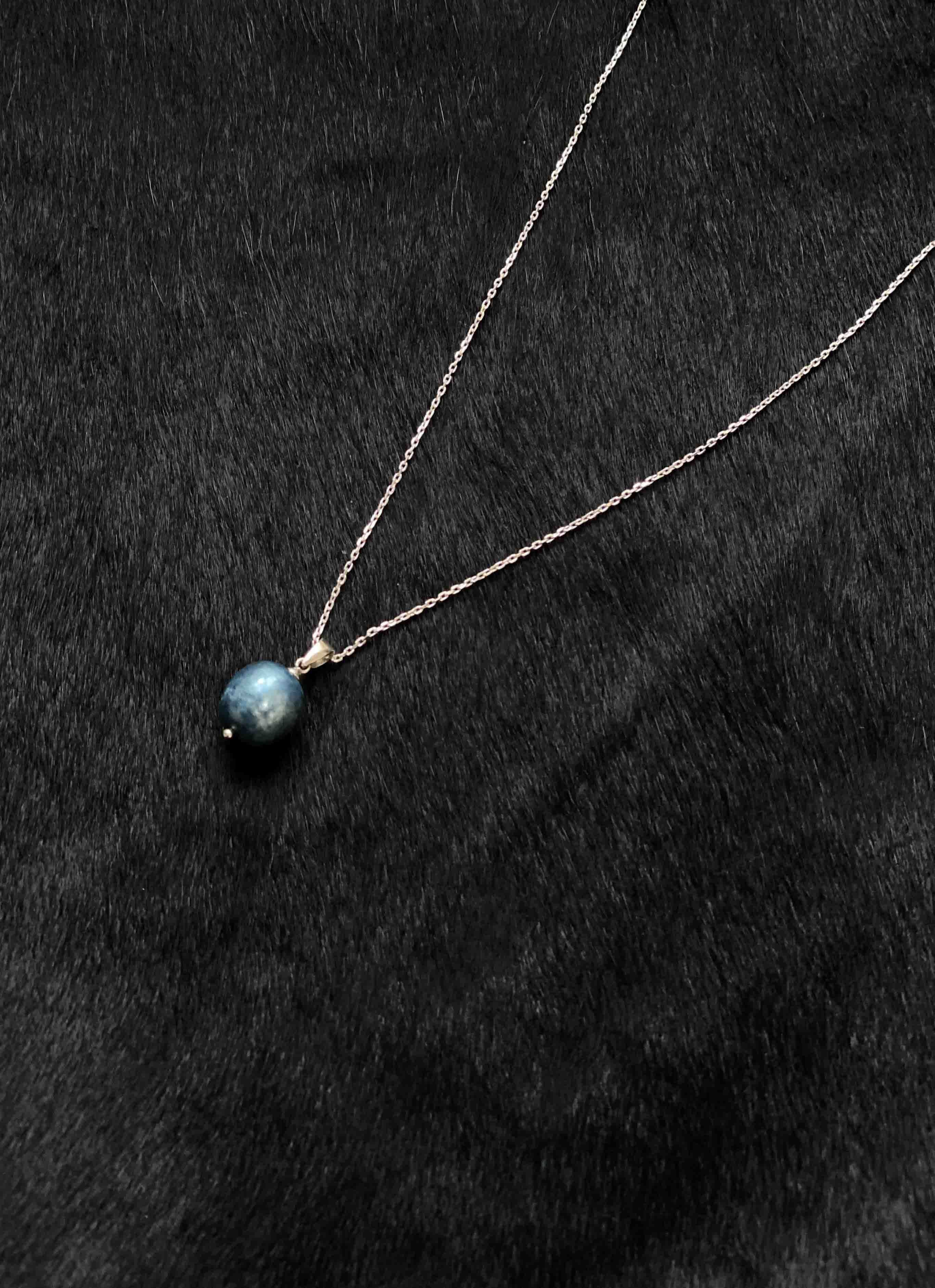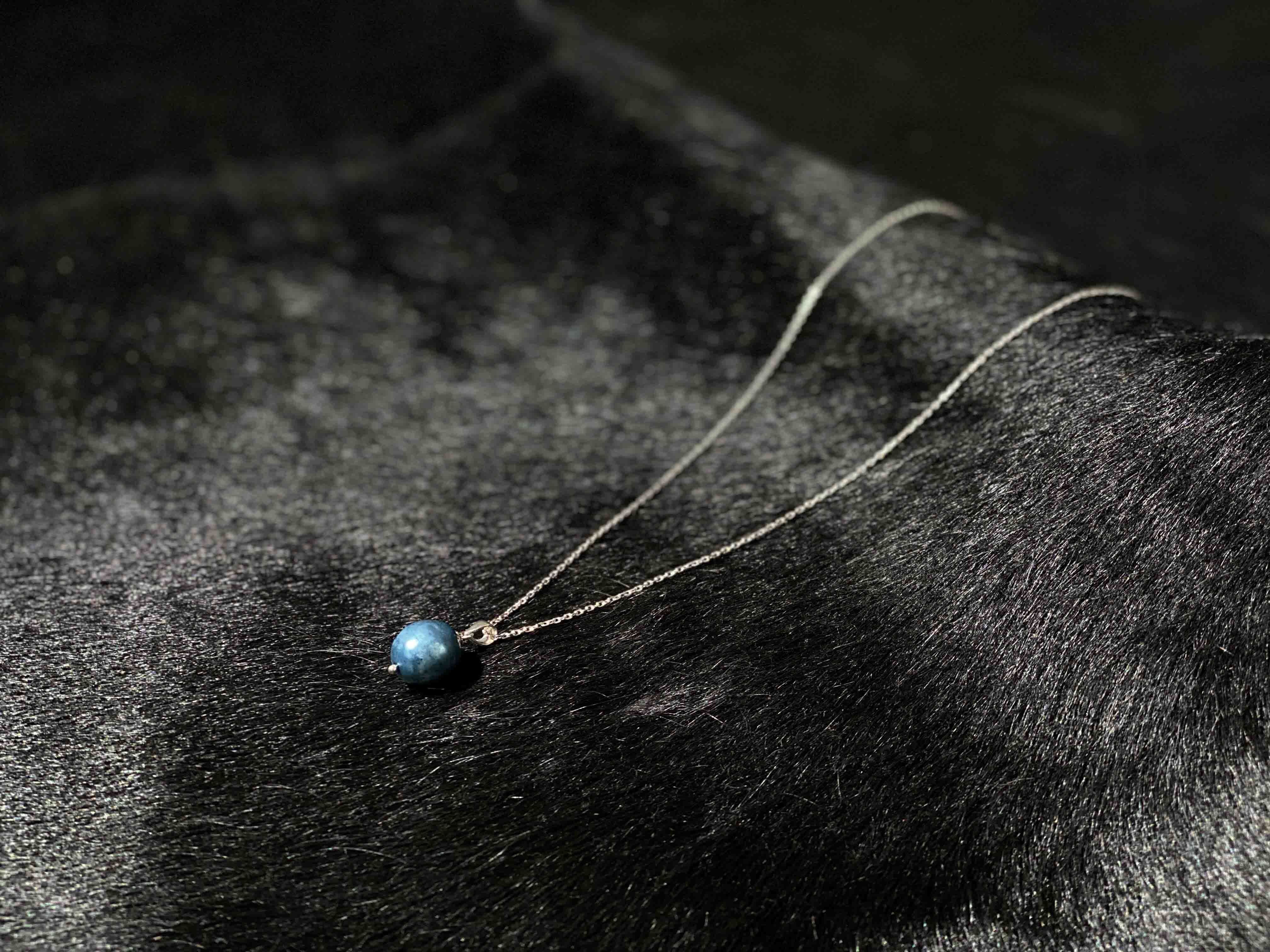 それはまるで、青の結晶。希少性の高い本藍染が施された大玉の藍染真珠にシルバー925のチェーンを絡ませたデザイン。華やかな大粒のBLUE PEARLを存分に味わって頂ける作品になります。