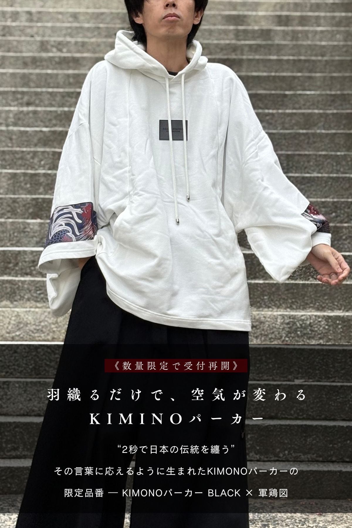 【新作のお知らせ|待望の白】【青木被服×KIMONOT®】コラボレーションKIMONOパーカー “WHITE ×軍鶏図”【極少数限定】AK-KIMONOPA