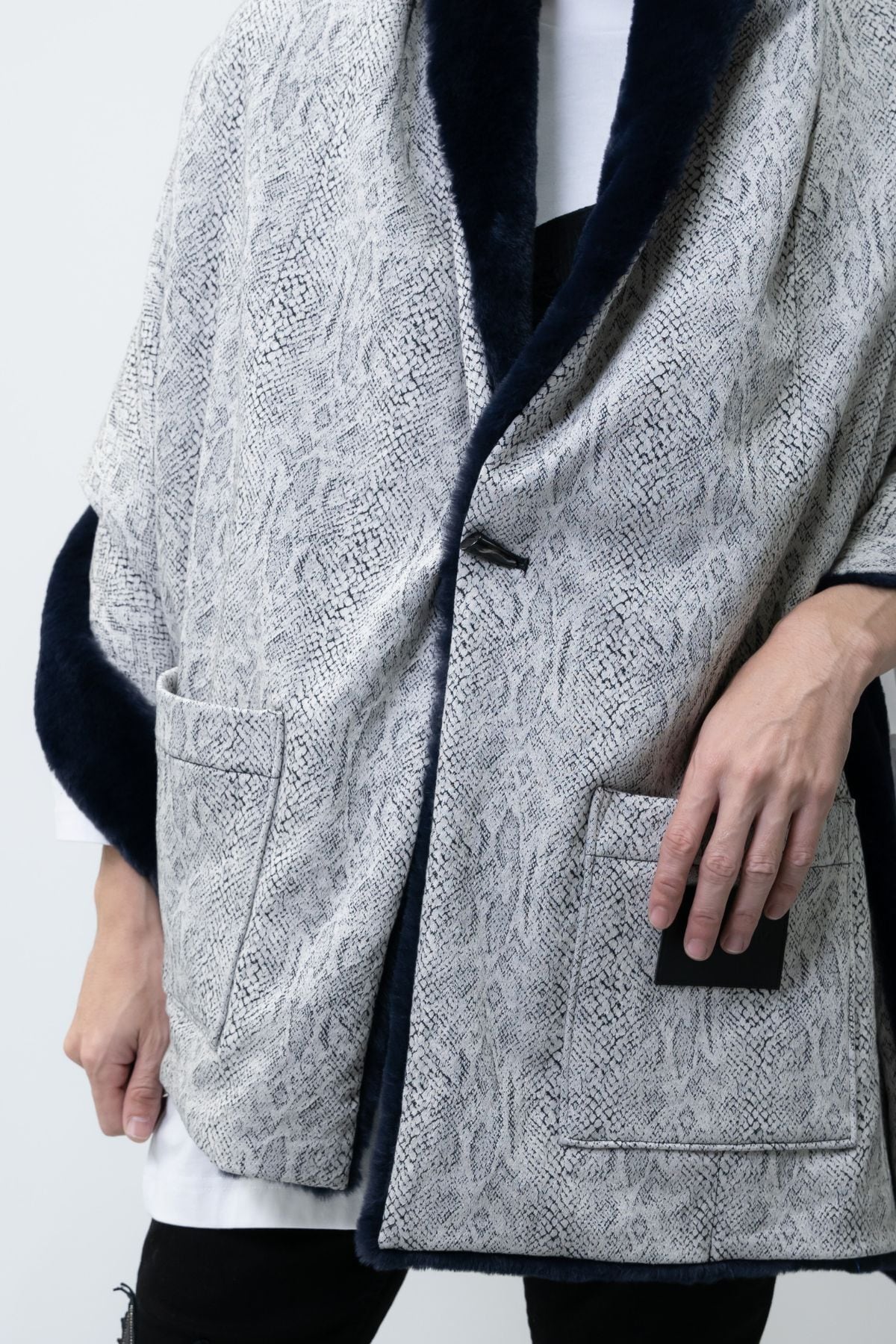 【新作|冬季限定】極暖ファー×蛇柄デニム―BLANCOAT FUR/ブランコート【岡山産デニム】【濃紺色ファー】—BLANCOAT FUR