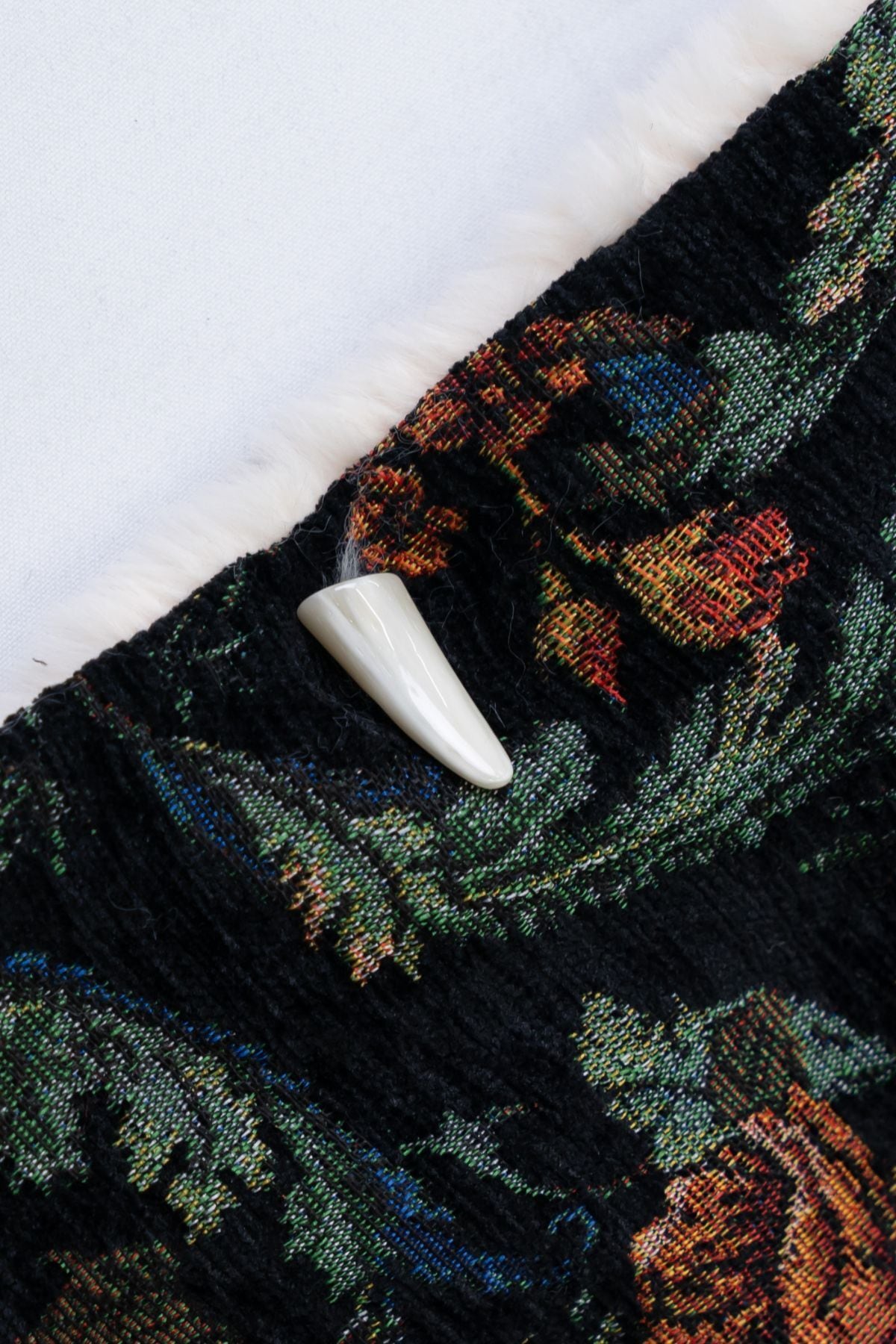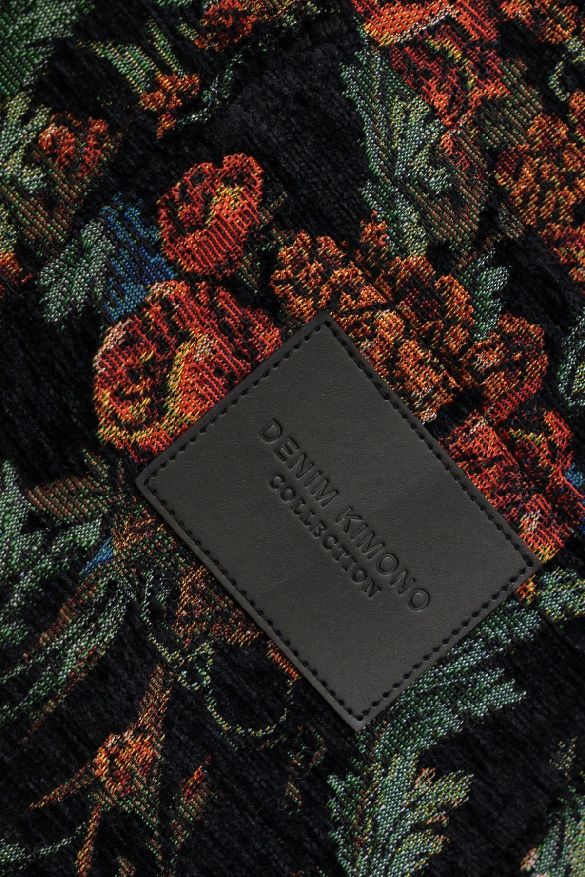 多色糸を用いて花々を立体的に織り上げた、岡山産の特別生地。織りで表現された柄はプリントでは出せない深みを持ち、見るたびに異なる表情を映し出します。