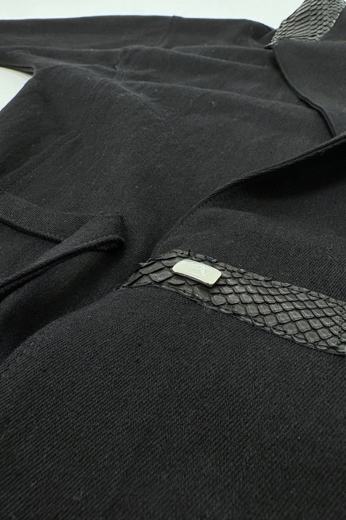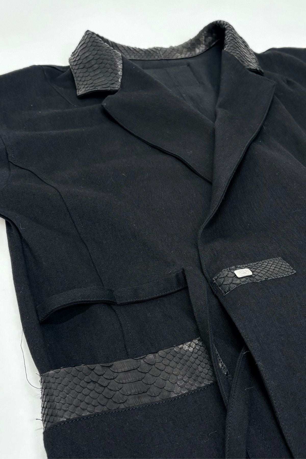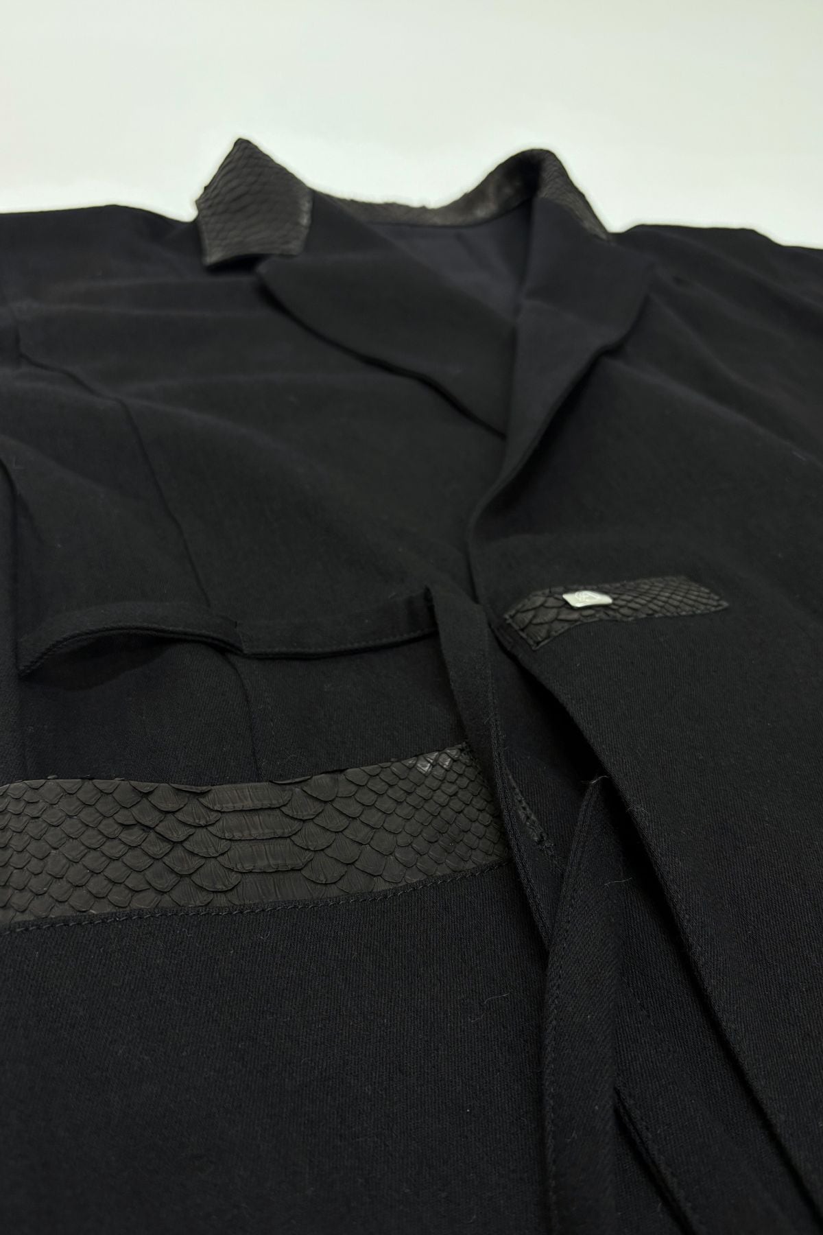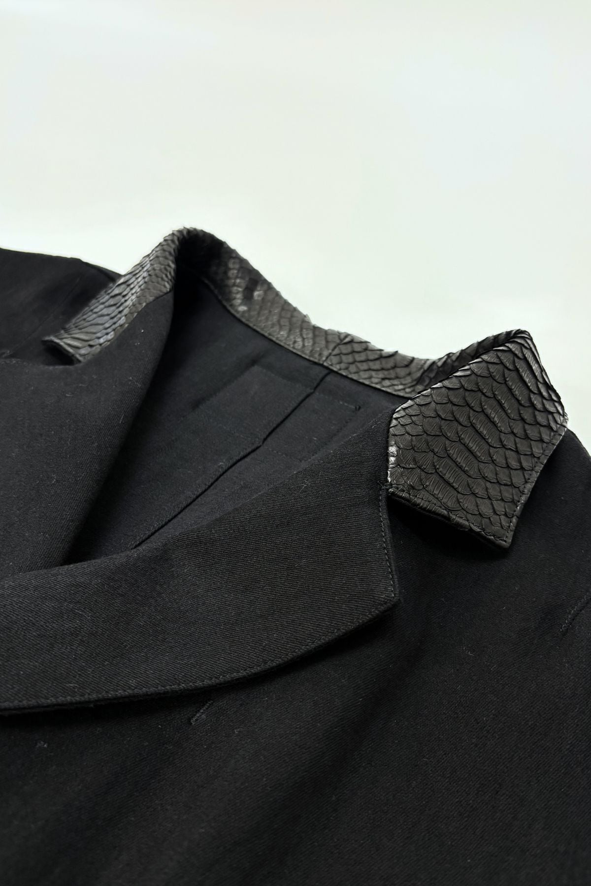 【数量極少|完全受注生産】極上の"縁"を纏う、黒蛇作務衣ジャケット-縁- / SAMUE JACKET YOSUGA― 黒に宿る、和の品格と革の存在感 【岡山ブラックデニム × パイソンレザー】【made in JAPAN】