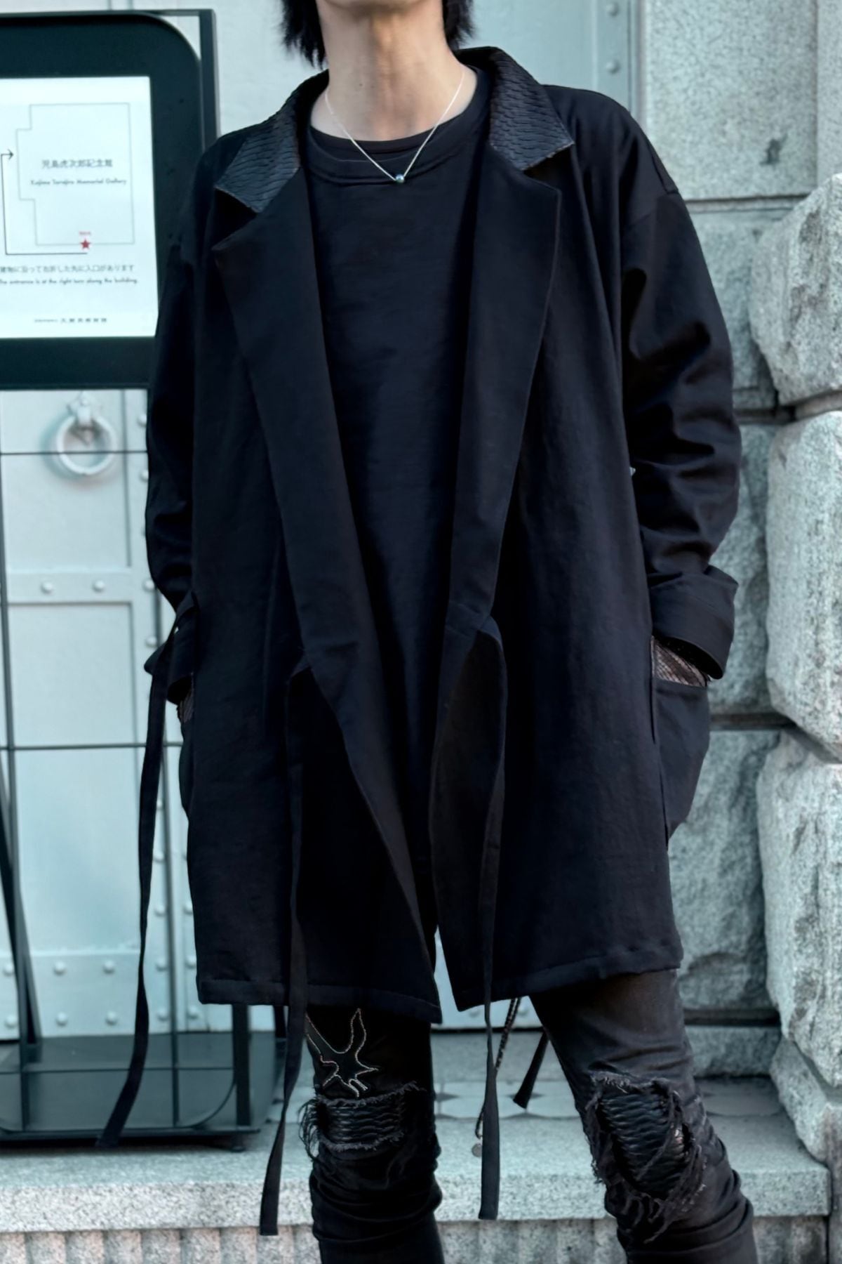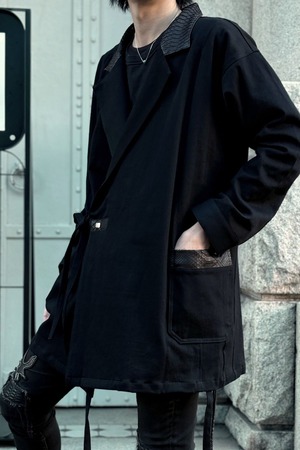 フロントは作務衣仕様、袖や身頃はテーラードジャケットの設計。