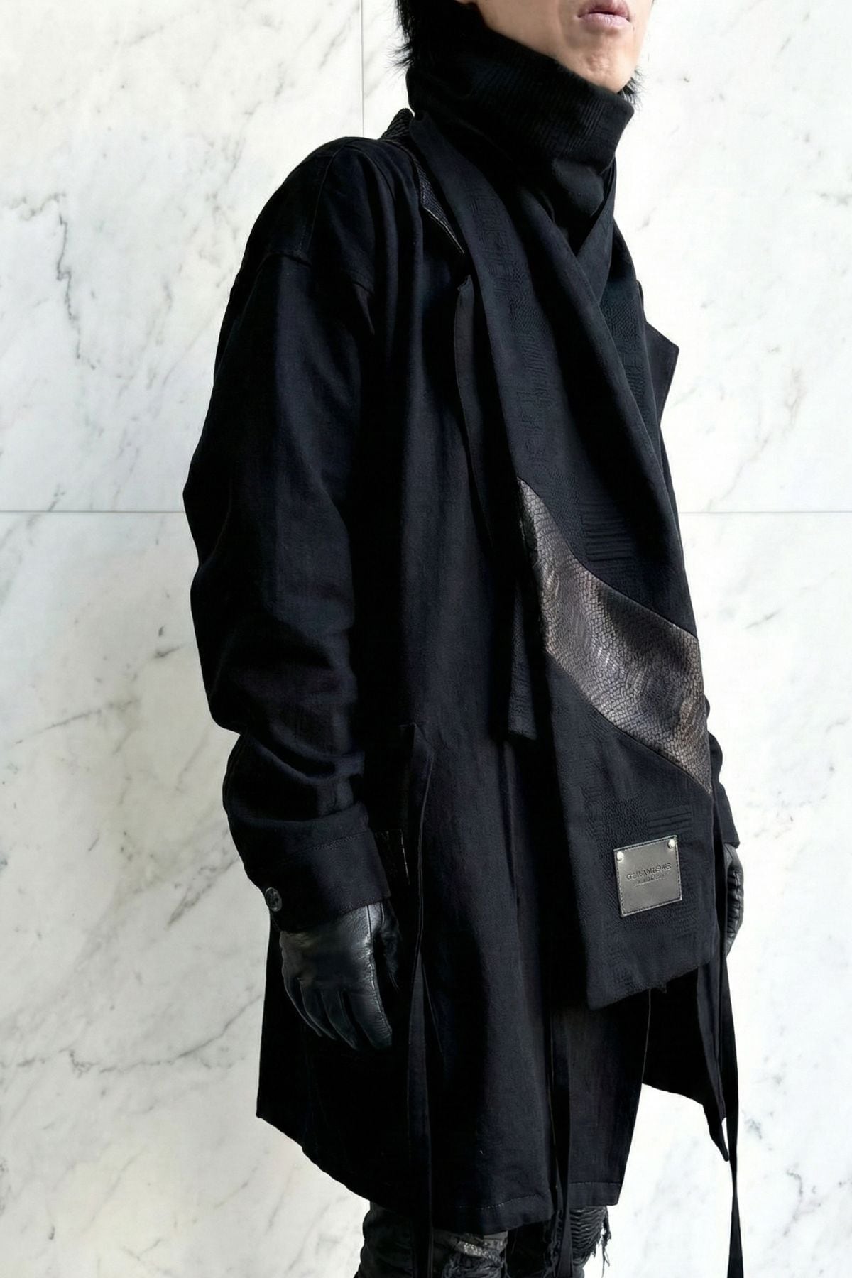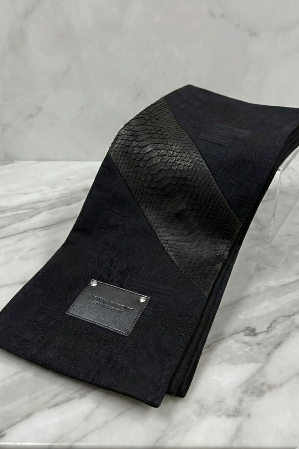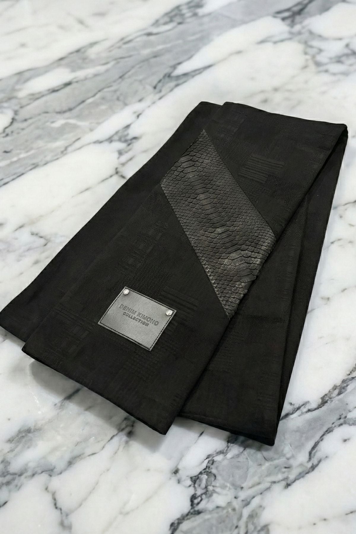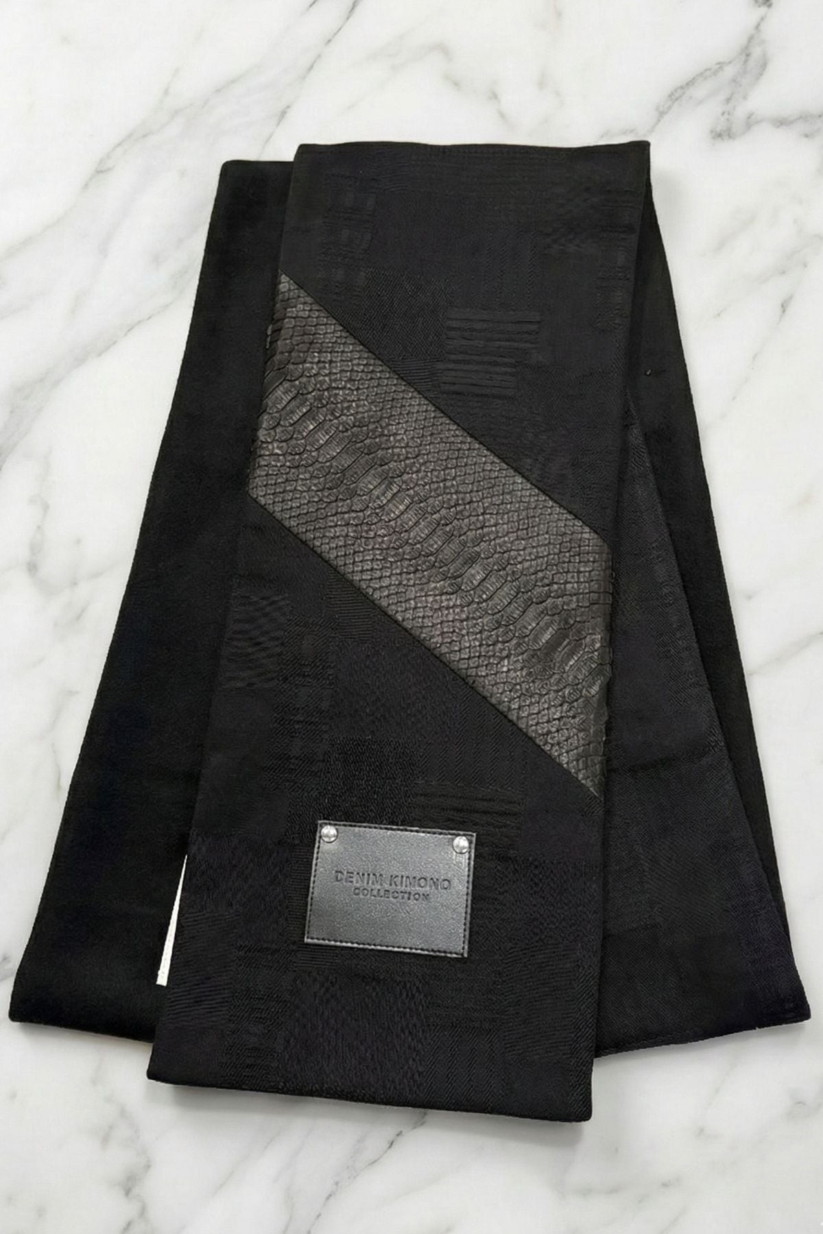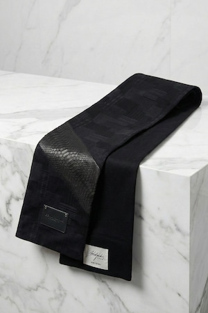 【数量極少|完全受注生産】黒蛇カシミアデニムマフラー-縁- / DENIM MUFFLER YOSUGA ―極上の"縁"を纏う【岡山デニム】【パイソンレザー】AK-2512-PMF1