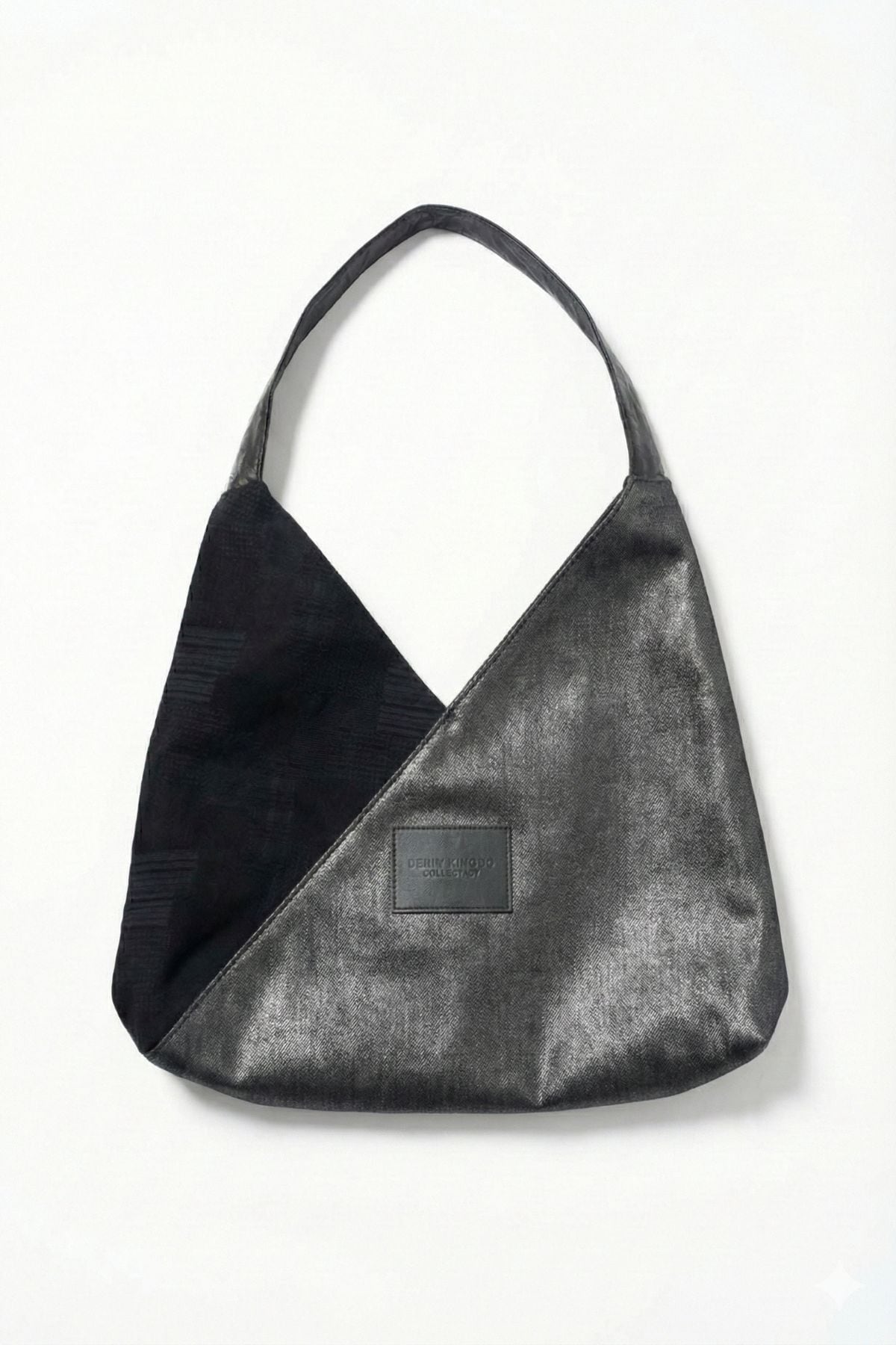 アシンメトリーに縫い合わせ、素材の個性と陰影を引き出しました。