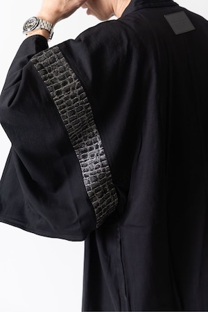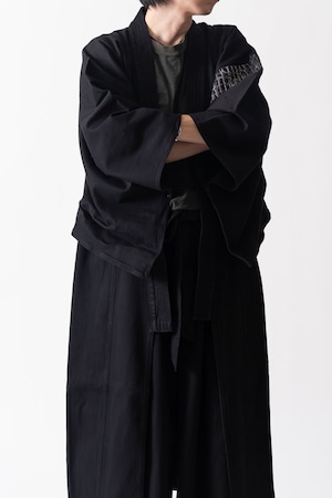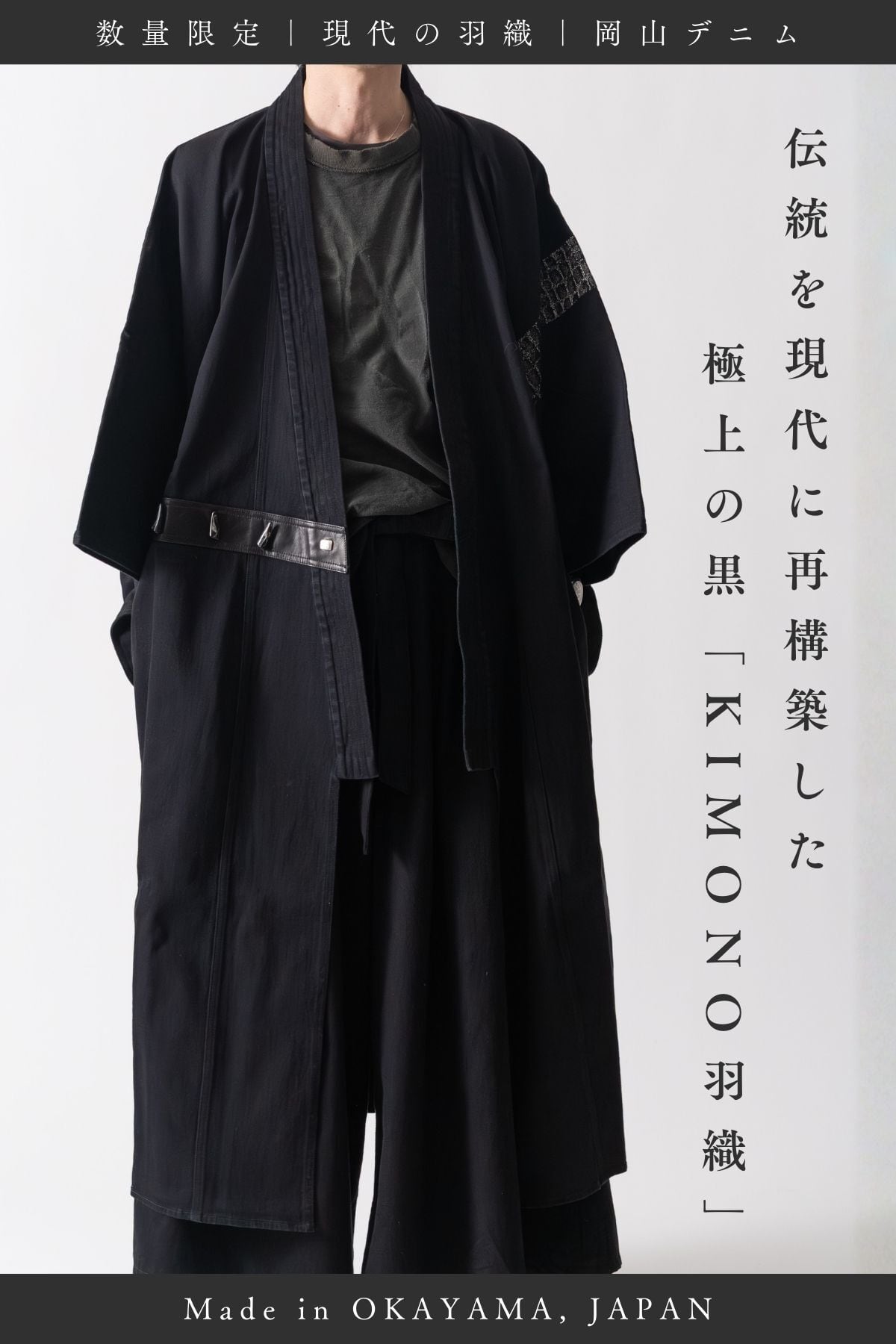 【数量限定|新作】BLACK KIMONO HAORI COAT ― 岡山ブラックデニム × クロコダイル柄ジャガード ― 伝統を留め、静かに際立つ【Made in JAPAN】ーAK-KIMONO-CT