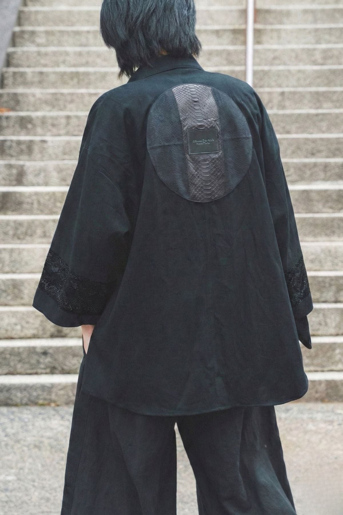 【Web限定|完全受注生産】Kimono Denim Shirt -黒蛇革×黒蛇DENIM-|神龍を纏うデニムシャツ【岡山デニム】—AK-KIMNO-SH1 #COAL BLACK PYTHON