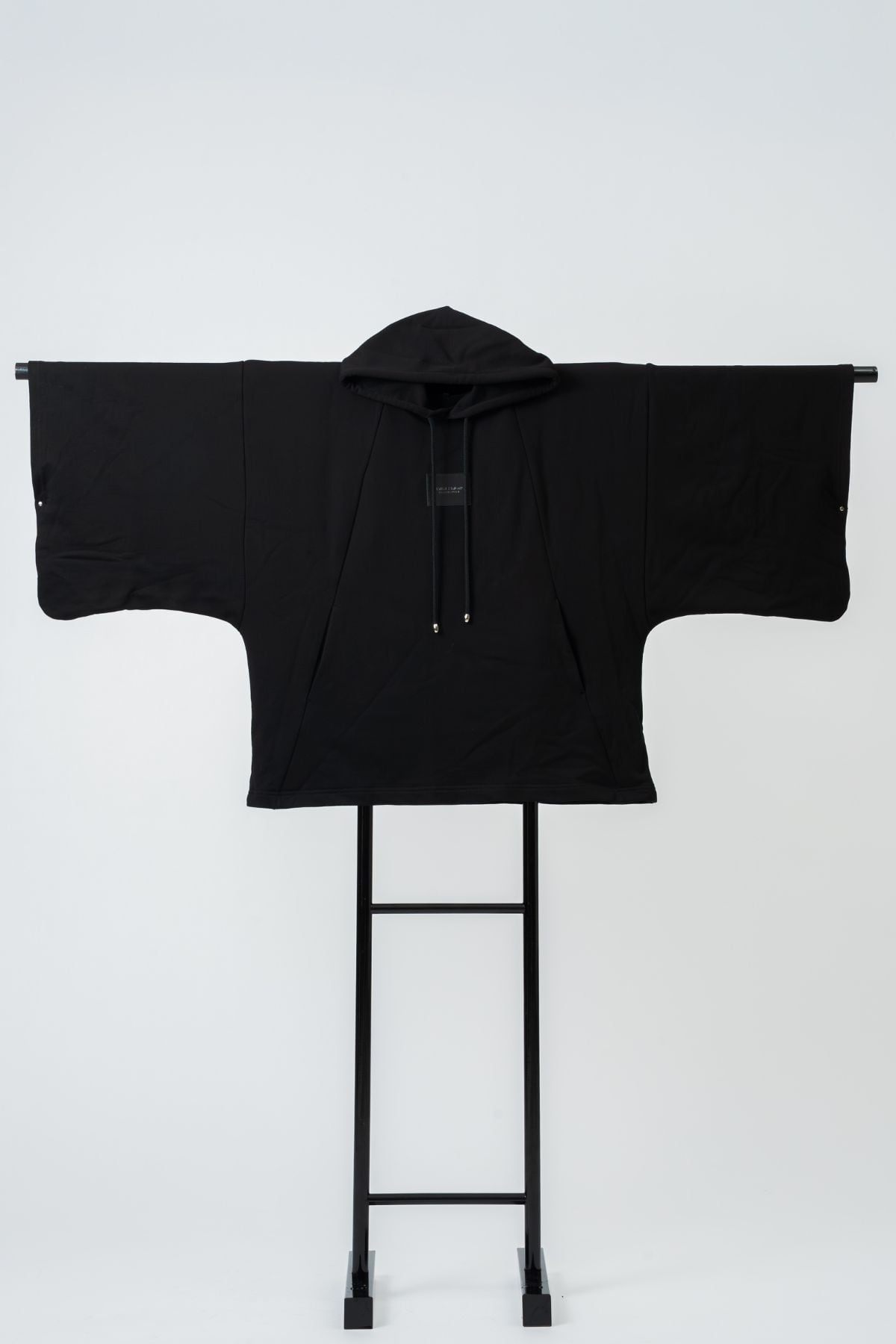 着物のように広がる袖により、ただ羽織るだけで凛とした佇まいを実現。動くたびに生まれる陰影が美しい。