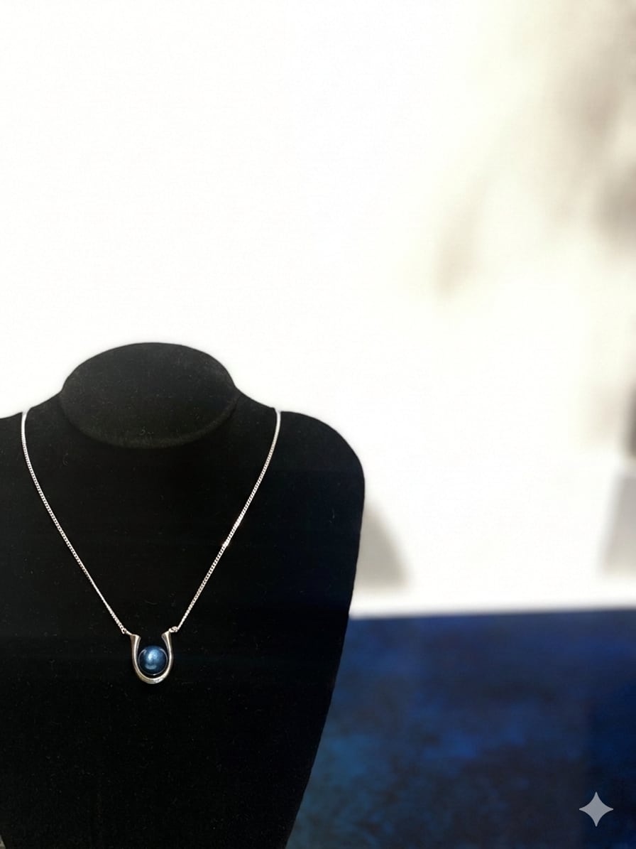 「ARIA」と名付けられた、透き通る藍真珠とシルバー925のデザインが
