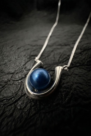 藍に染まった真珠が馬蹄の中に入っていく瞬間を切り取ったデザインが、