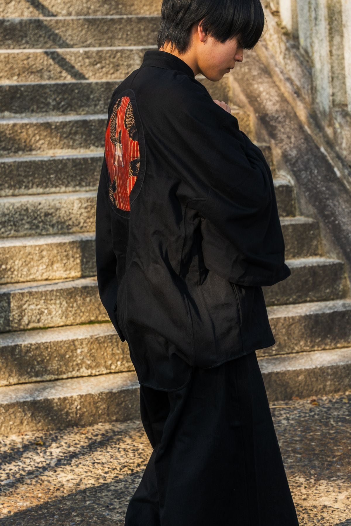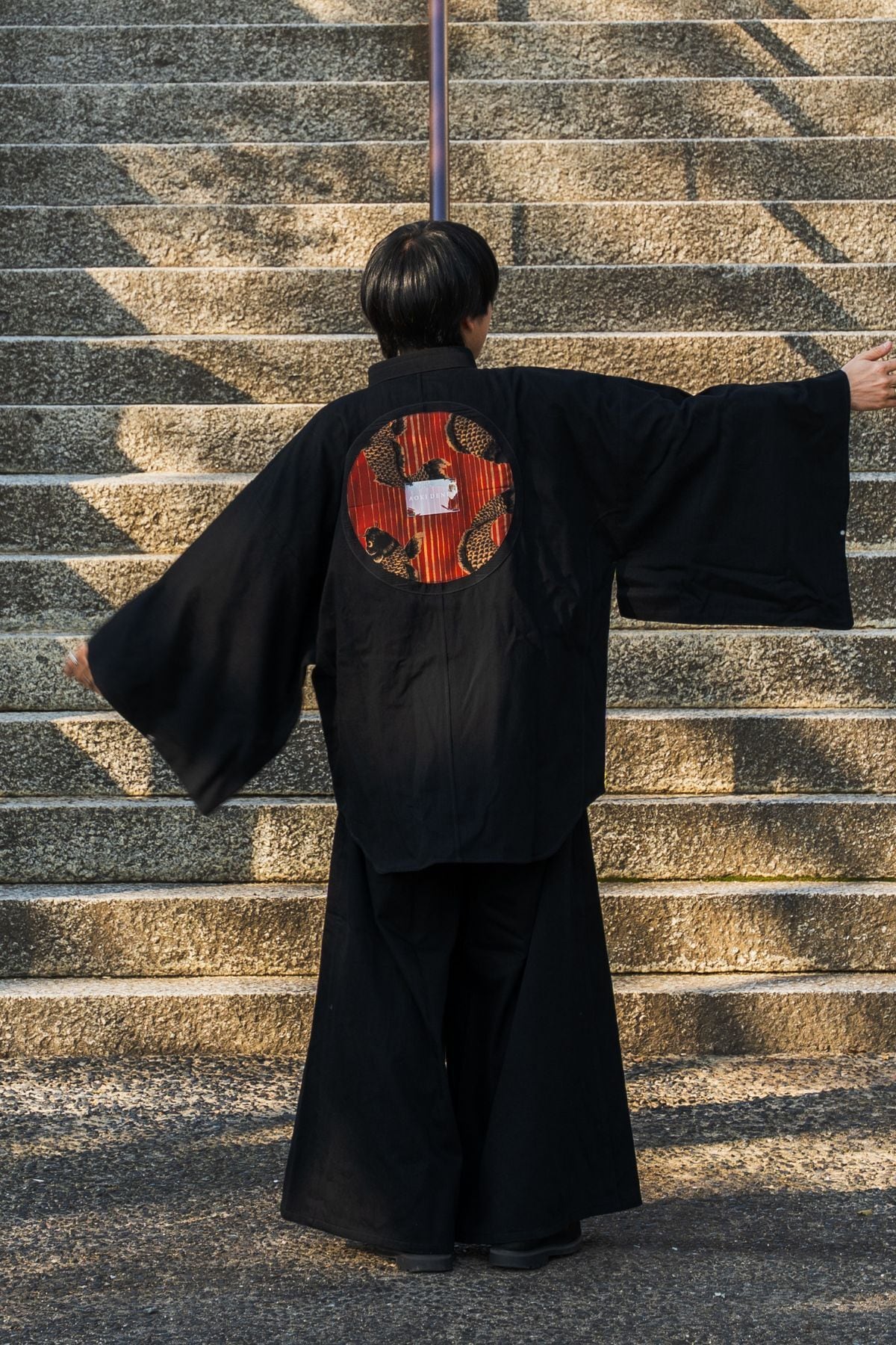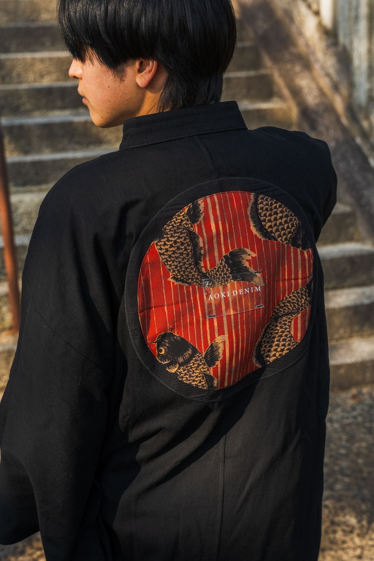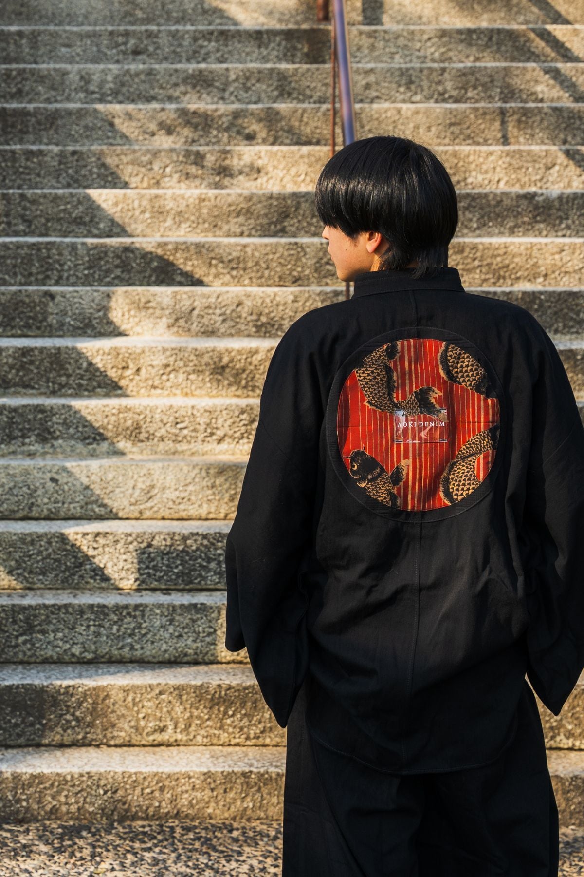 背面には錦鯉のモチーフを配置。静かな佇まいの中に、さりげない個性と物語を宿します。前からは控えめに、後ろ姿にだけ印象を残す設計です。