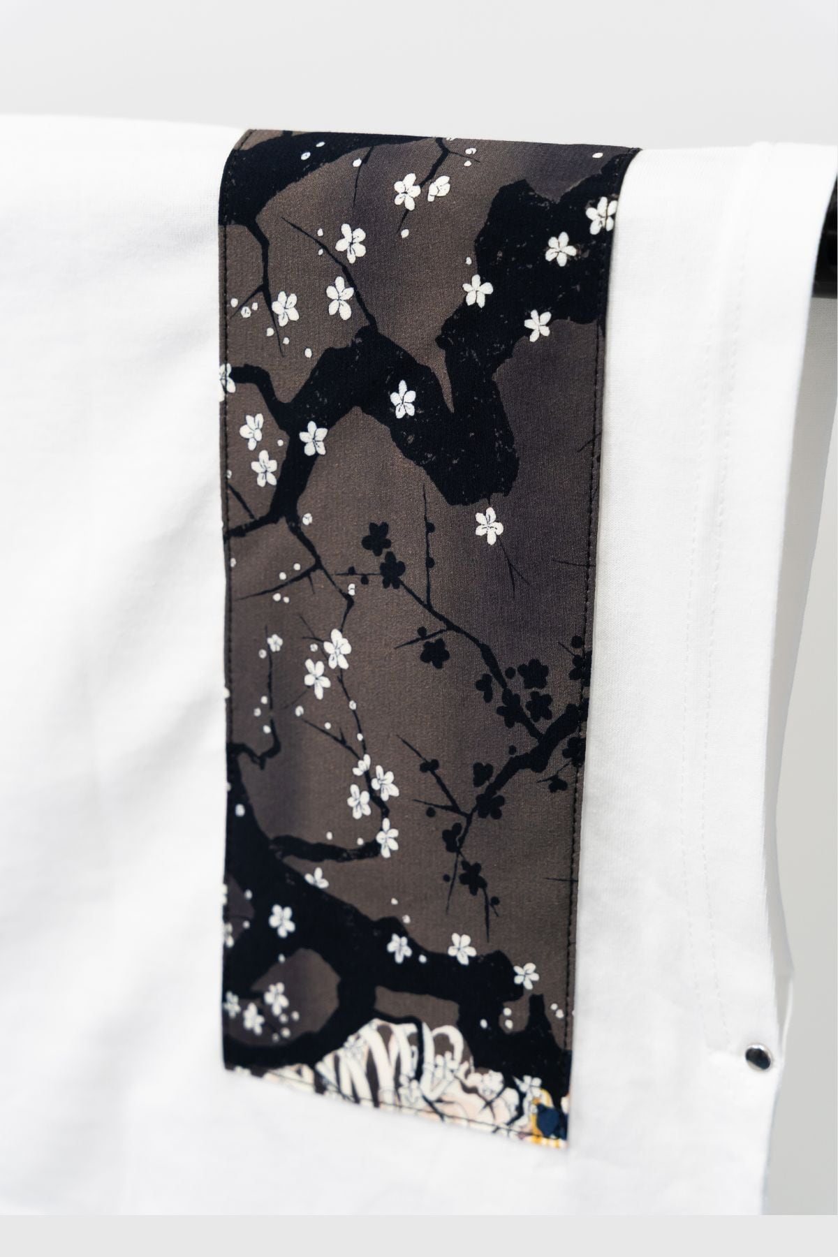 KIMO NO T® の特許構造:キモノ袖とTシャツの融合。一瞬で“和”の装いが完成します。