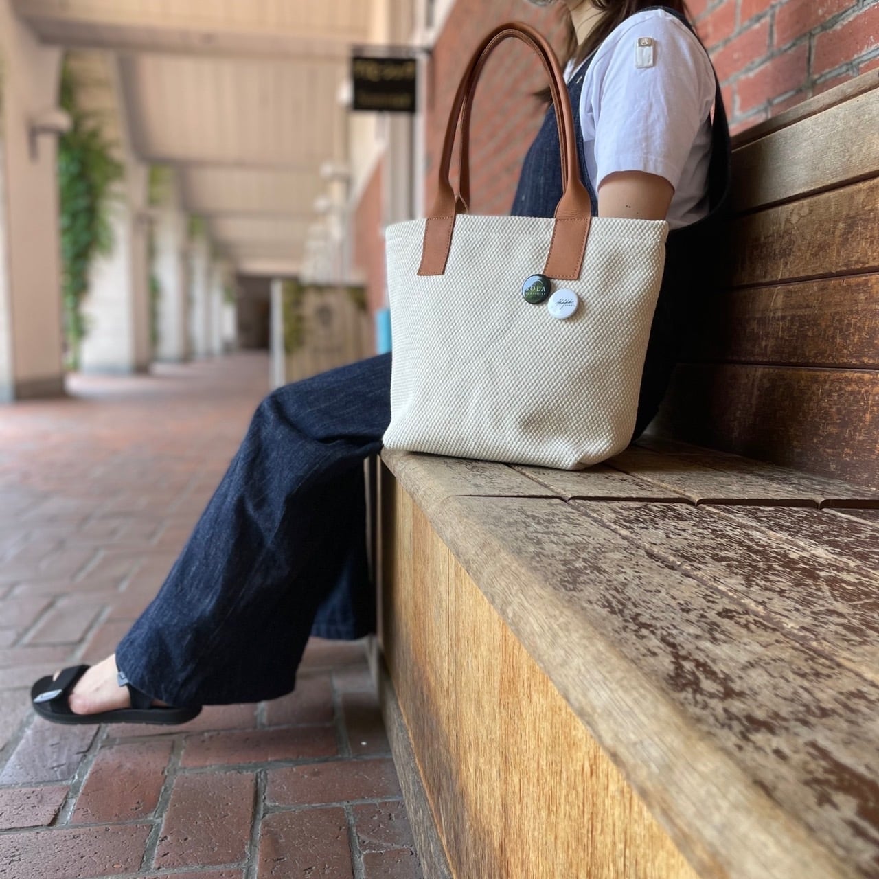 取り外し可能なオリジナルロゴバッジに個性がキラリと光る万能バッグは、青木被服スタッフもヘビロテ愛用中!