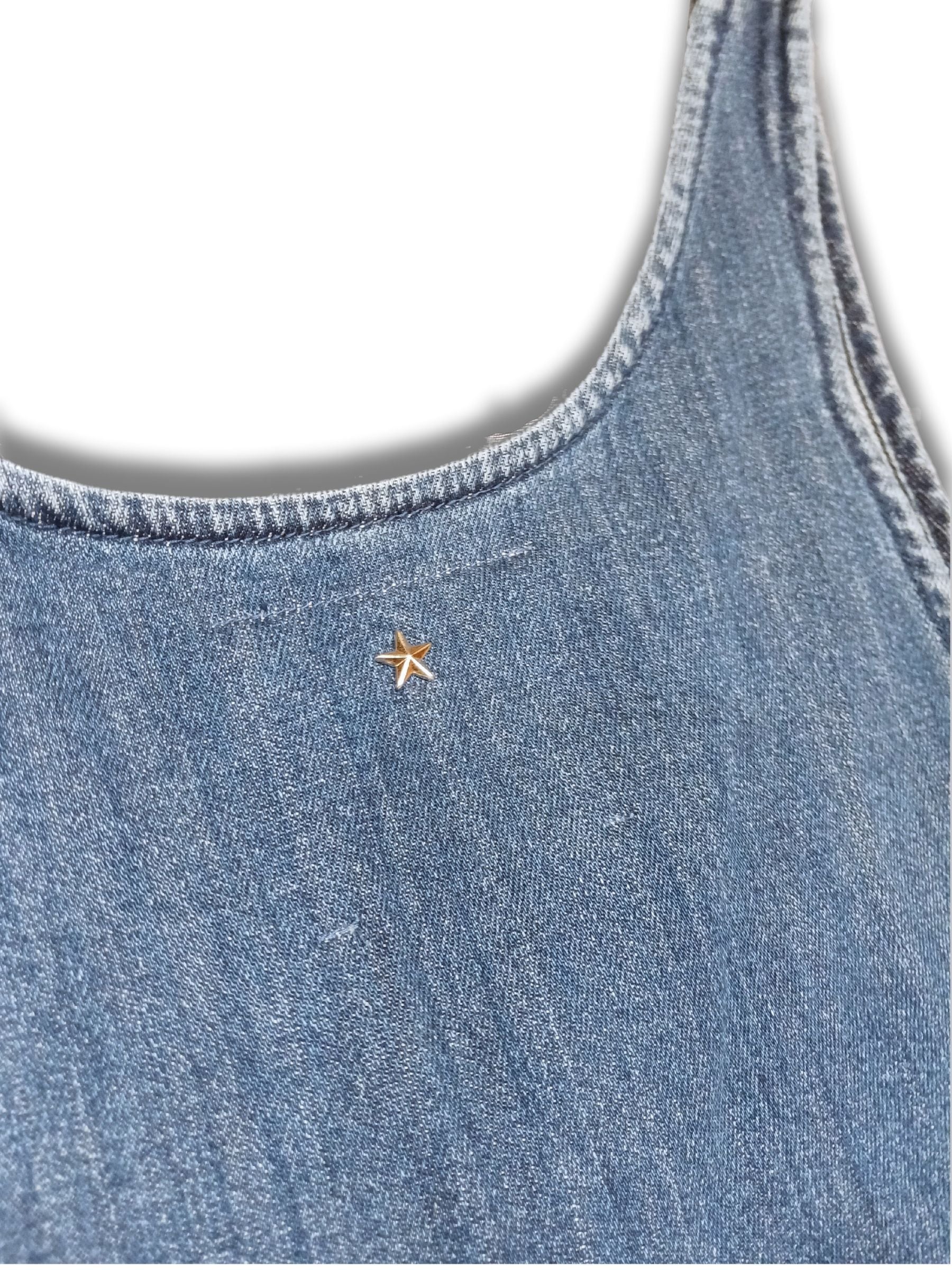シーズンレスに着こなせるデニムジャンパースカートに仕上がりました。