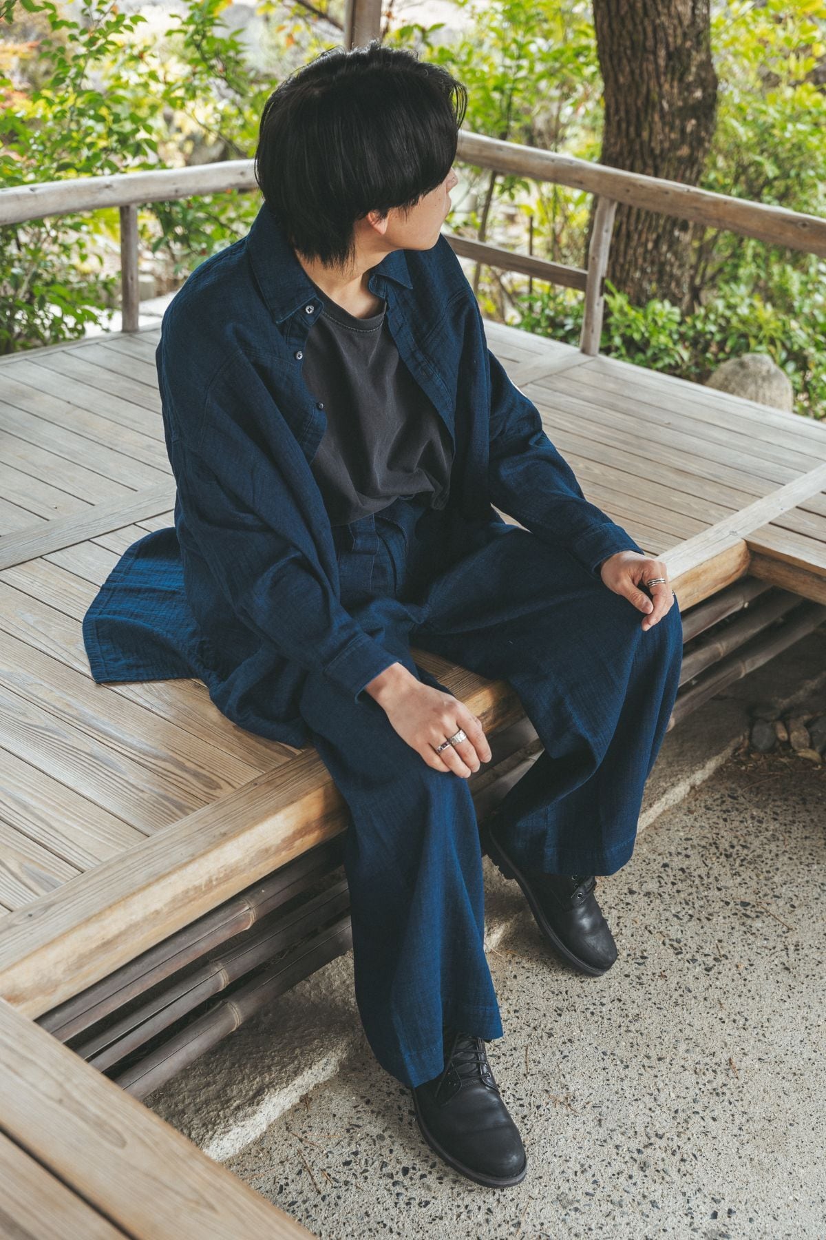 井原デニムらしいしなやかさと通気性、ダブルガーゼの優しさを両立。