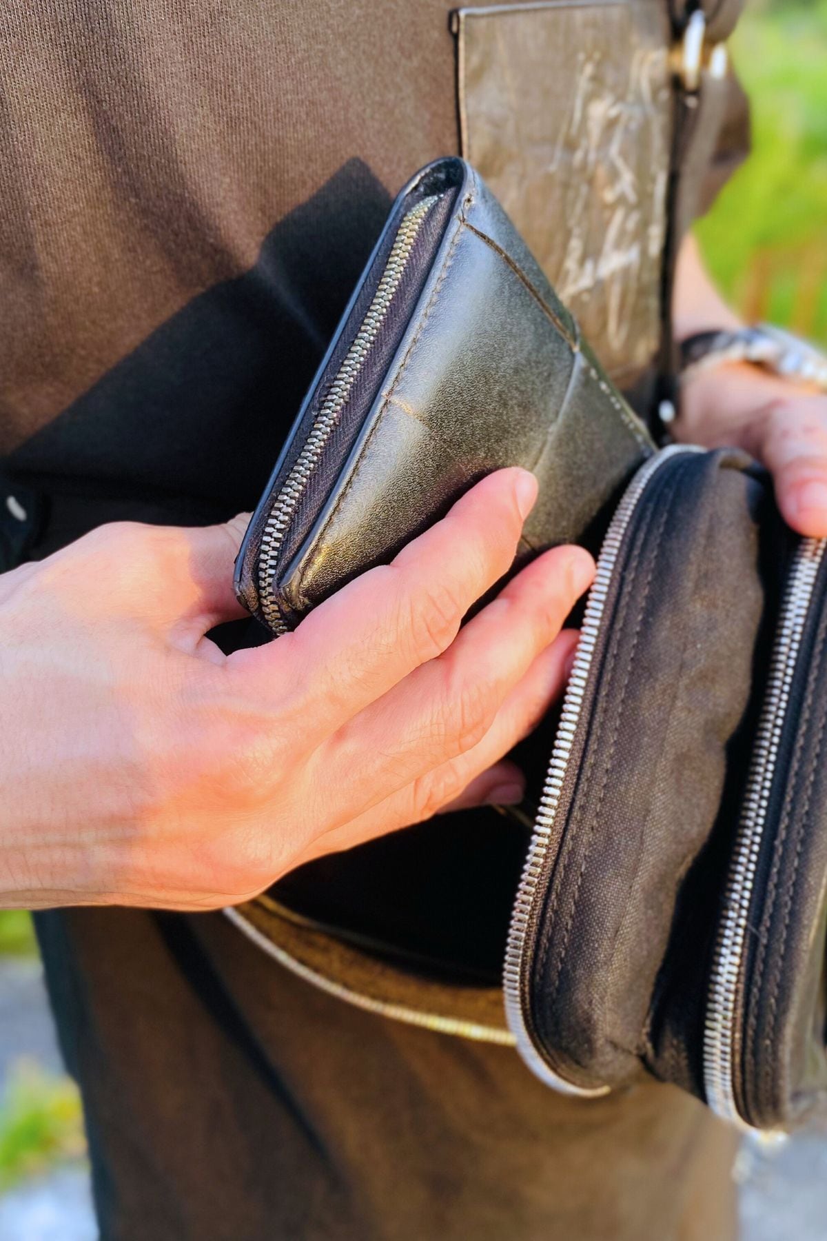 長財布・携帯・ペットボトルなど出かける際に必要なものはすべて入る収納力。大容量の「ファスナー付メインポケット」が二つと、小物が入る「アウターポケット」を完備しています。